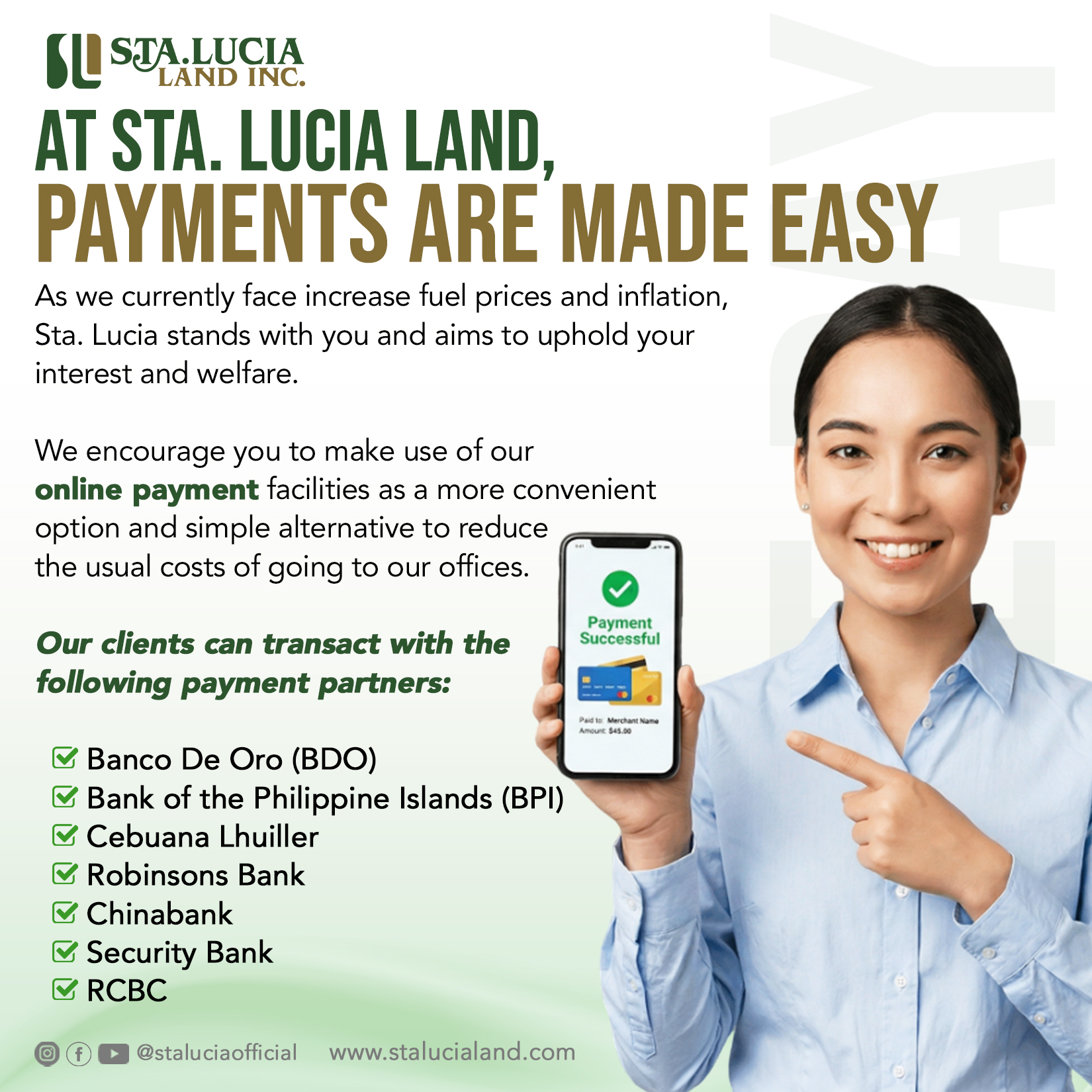 Sta. Lucia Land, Inc. is a leading Philippine developer of residential communities and listed on the Philippine Stock Exchange (stock code—SLI). It is part of the Sta. Lucia Group with over 50 years track record of real estate development. The Sta. Lucia Group has completed over 220 projects and developed over 10,000 hectares of land across 70 cities and municipalities in 10 regions & 15 provinces across the Philippines. SLI’s portfolio consists of developments that include residential, commercial, leisure and retail assets.